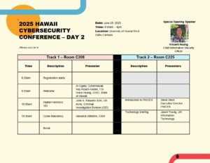 This is an information sharing event intended to help Hawaii’s varied communities be better informed and better prepared against online criminals.